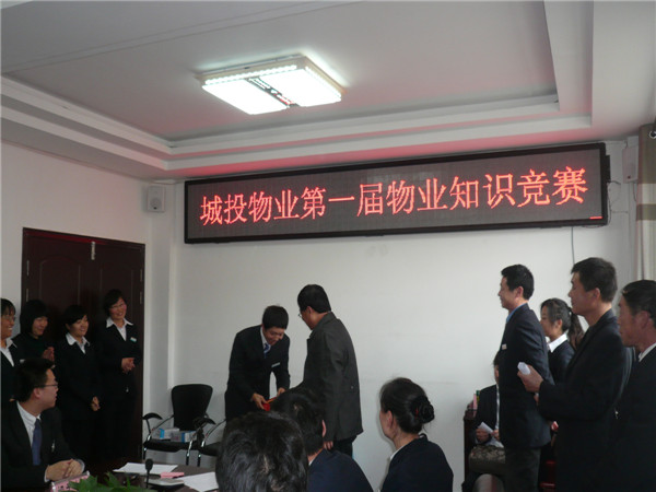 2012年12月21日,物業(yè)公司在統(tǒng)一大樓三樓會(huì)議室舉辦了第一屆物業(yè)知識(shí)競(jìng)賽。此次競(jìng)賽以“增強(qiáng)業(yè)務(wù)知識(shí),提升服務(wù)理念,穩(wěn)固企業(yè)發(fā)展”為主題,競(jìng)賽試題以物業(yè)管理知識(shí)、城投集團(tuán)企業(yè)文化理念、經(jīng)營(yíng)方針為主,并融合了時(shí)事政治和基本常識(shí),從多方面展現(xiàn)陽(yáng)光、上進(jìn)、有責(zé)任的城投青年員工整體素質(zhì)與形象,為公司持續(xù)、健康、穩(wěn)固發(fā)展打下了良好基礎(chǔ)。