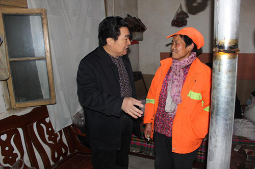 在九冶小區(qū)保潔員王春香的家中,總經(jīng)理趙明海關(guān)心地詢問起王春香的家庭生活情況,當(dāng)了解到王春香的丈夫患有腦梗、小兒麻痹沒有勞動能力,子女也因家中拮據(jù),早年輟學(xué)外出打工為父籌集醫(yī)藥費,家中的住房也是2013年殘聯(lián)捐助建造時,趙明海鼓勵她要樹立信心,克服困難,并且作為家中頂梁柱自己也要保重身體。趙明海說:“感謝你們?yōu)楣咀龀龅呢暙I和辛勤付出,盡管目前公司的發(fā)展會遇到許多困難,但再難也不會不管職工的困難。”王春香非常感謝公司領(lǐng)導(dǎo)的關(guān)心和慰問,表示今后將一如既往地用行動支持公司的發(fā)展,繼續(xù)盡責(zé)盡力做好本職工作,為城投物業(yè)做出更大貢獻。