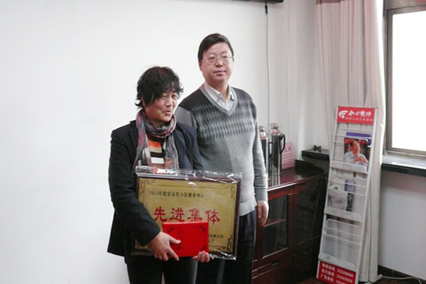 李總向榮獲2011年物業(yè)公司先進(jìn)集體的安谷苑服務(wù)中心頒獎