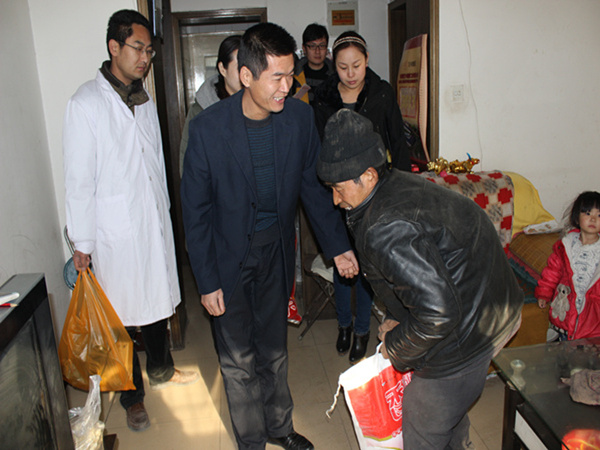 活動在社區(qū)辦提供的四戶家庭情況較為困難的業(yè)主家中進行。主要是對患病業(yè)主進行義務(wù)就診,講解冬季預(yù)防疾病的常識,發(fā)放慰問物品。
